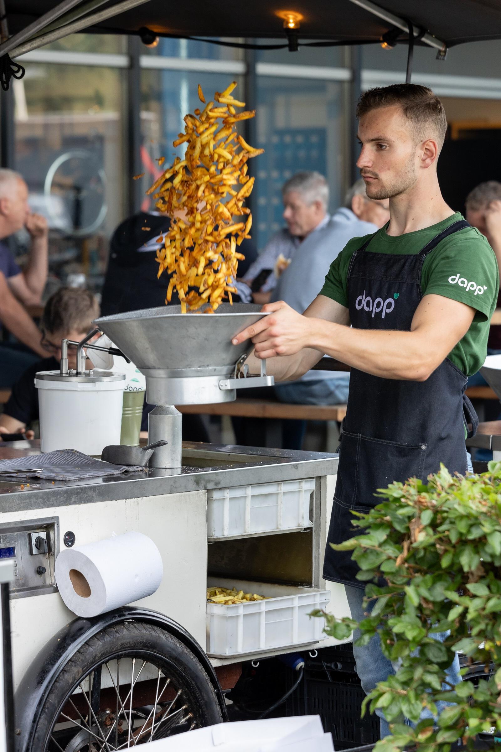 Wat begon als een eenvoudig idee op de biologische markt in Utrecht, groeide uit tot een geliefd merk met een missie. Dapp, het bedrijf achter de bekende Frietfiets, staat voor ambacht, smaak en duurzaamheid. Vanuit de overtuiging dat goed eten zowel lekker als verantwoord kan zijn, begon Dapp met het bakken van biologische friet. Vers gesneden uit aardappelen van lokale telers, geserveerd vanuit een charmante frietkraam.