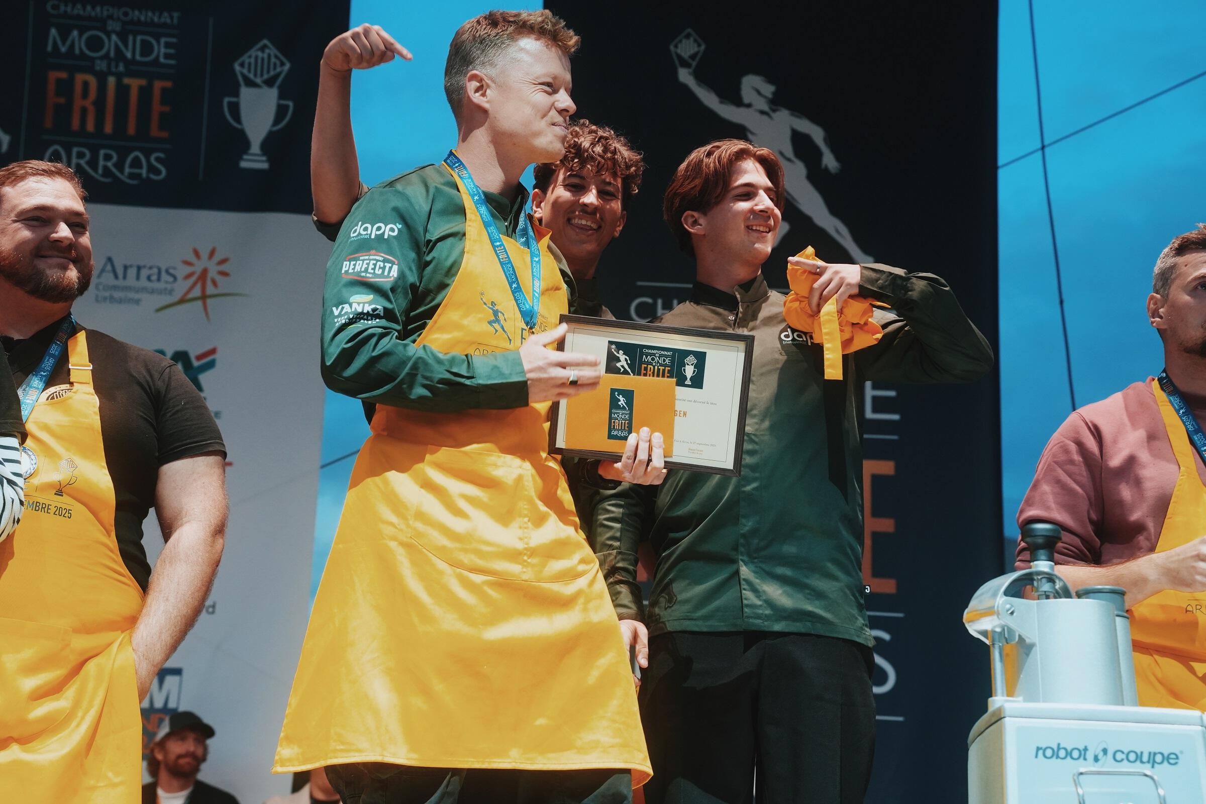 Het harde werk bleef niet onopgemerkt. In 2015 werd Dapp bekroond tot ‘Beste Friet van Nederland’ door het AD. Een erkenning voor hun toewijding aan kwaliteit en smaak. In 2025 pakte Dapp écht uit: op 27 september won Siem van Bruggen, eigenaar van Dapp, de derde editie van het Wereldkampioenschap Friet Bakken in de categorie “Authentieke Friet” in Arras Frankrijk. De friet wordt drie keer gefrituurd en lichtelijk besprenkeld met rozemarijn voor extra bijzondere smaak. Ongeraffineerd Atlantisch zeezout was de finishing touch.