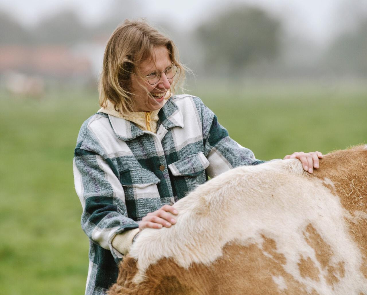 “Voor ons is het belangrijk dat de kalfjes lang bij de koe kunnen blijven. Dat speelt vooral in het voorjaar en de zomer, dus dan zijn de kalveren bij hun moeder in de kudde. En dat maakt de dynamiek van zo'n kudde en dus ook van het werk wel heel anders dan in de winter, wanneer de kalveren groter zijn en gespeend worden of al uit de kudde zijn. Een kudde voelt heel anders aan als er veel kalveren bij lopen. De energie is dan veel frivoler en luchtiger. In de winter wordt het allemaal wat rustiger.