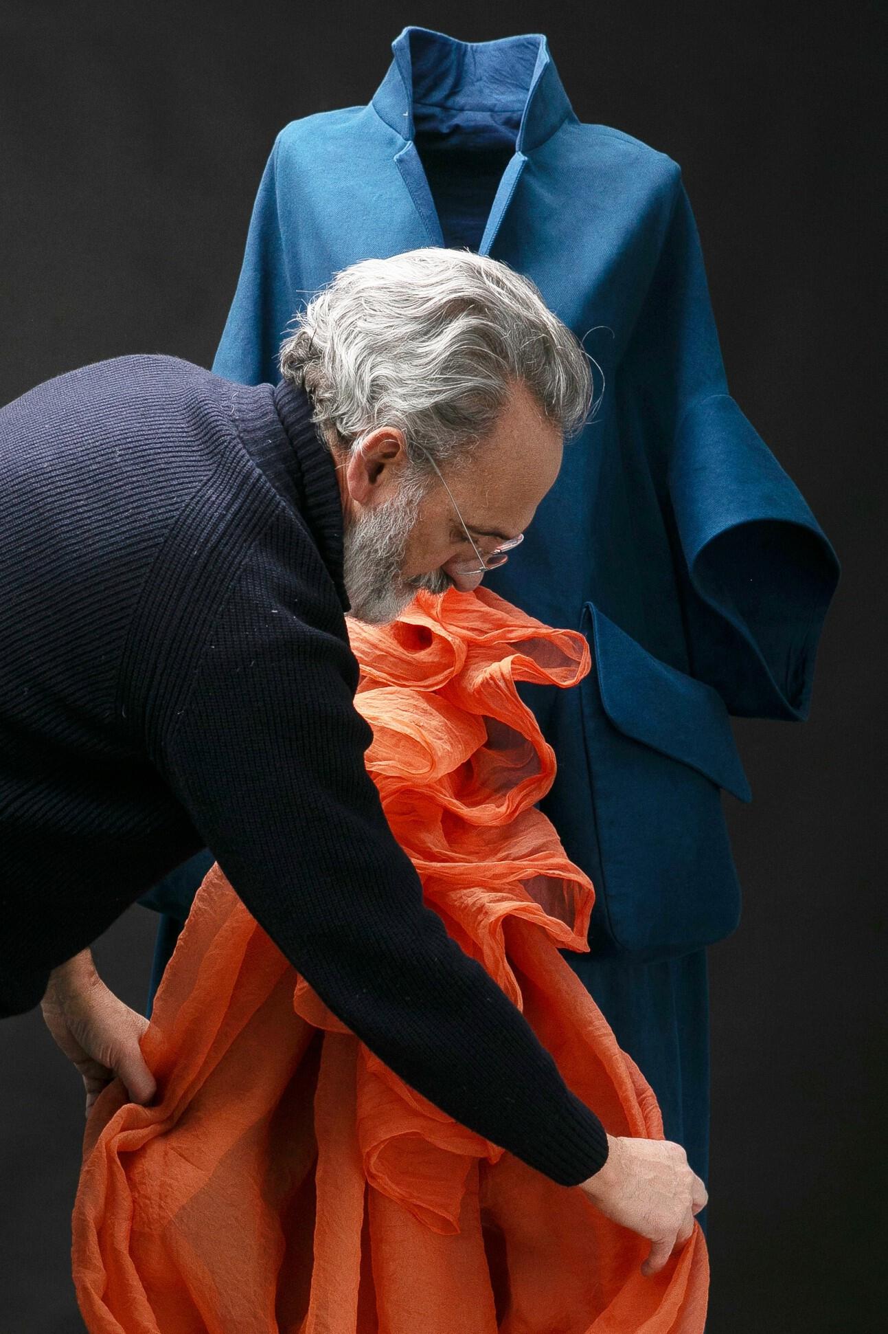 Het diepe groen en het indigo-blauw van deze bijzondere mode-creaties is deels afkomstig van de Brabantse bodem van onze boerderij. De gerenommeerde Spaanse modeontwerper Marcos Luengo maakte vier ontwerpen met gebruik van Demeter-gecertificeerde stoffen van de LOADS Collection van de Friese textielkunstenaar Claudy Jongstra en haar zoon Jesk Jongstra.