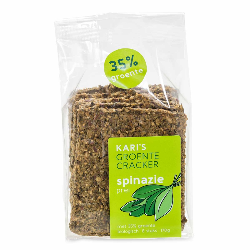 De spinazie/preicracker is lekker hartig; ideaal voor bij de lunch of als 4 uurtje. Met een volle en pure smaak. De groentecrackers zijn op basis van boekweit en haver. Er kunnen wel sporen van gluten inzitten, omdat we in onze ambachtelijke bakkerij ook werken met spelt en rogge. Onze eerste proevers houden niet alleen van de pure smaken, maar ook van de goede verteerbaarheid van de ingrediënten. Geen opgeblazen gevoel. Sommige van de eerste proevers vinden dit meteen de lekkerste vegan cracker die ze ooit gemaakt hebben.