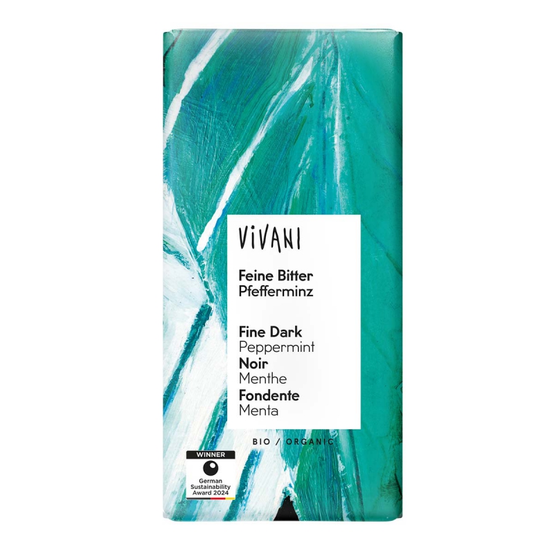 Pure chocolade gevuld met zachte pepermuntvulling. De verpakking is gemaakt van papier en een composteerbare NatureFlex-film.