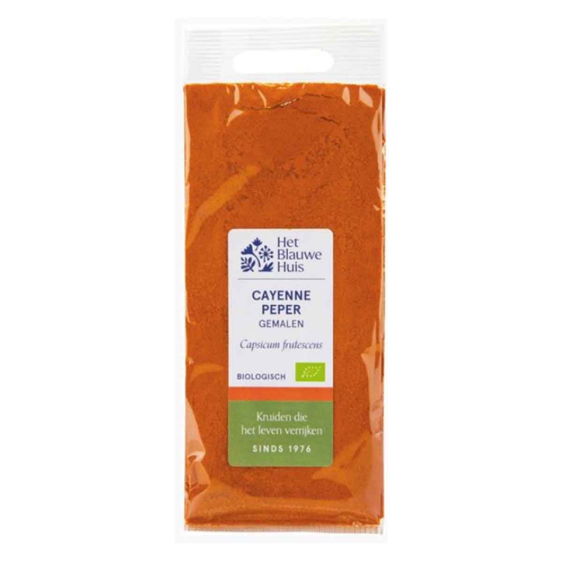 Voeg pit toe aan je gerechten met Het Blauwe Huis Gemalen Cayennepeper. Deze krachtige specerij brengt een intense, pittige smaak naar je favoriete gerechten. Voeg naar smaak toe voor een pittige kick. Zelf geteeld en met zorg verwerkt.