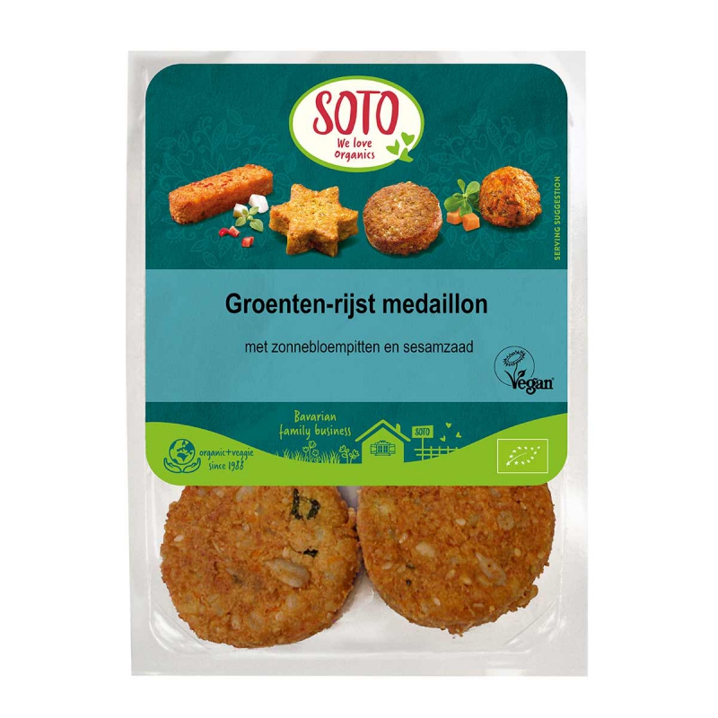 Veganistische mini medaillons bereid met courgettes, wortelen, mungboonspruiten, bruine rijst en tofu. Verfijnd met sesam en specerijen.