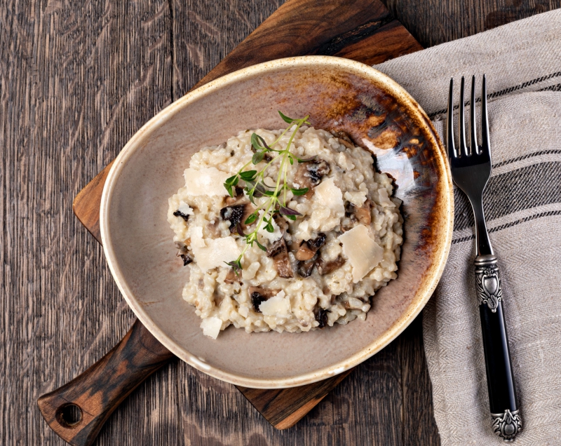 Voeg nog een klontje boter toe aan de gare rijst. Roer voorzichtig door elkaar, je wilt geen rijstpap!